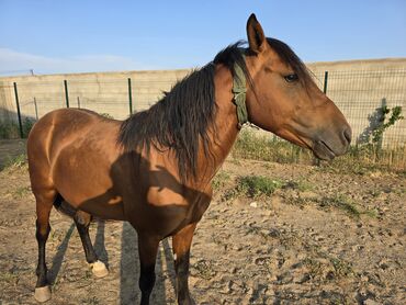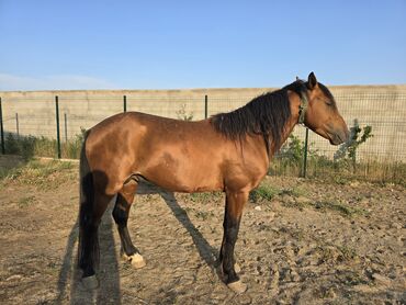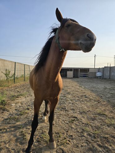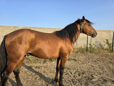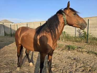 Satılır: at - Rəng: tünd qəhvəyi (qara yal və quyruq), alınında kiçik ağ nişanə - Bədən quruluşu: möhkəm, balanslı, uzun ayaqlar; dırnaqlar təbii formada - Boy və çəkidə orta ölçülü, kənd və çöl ş...