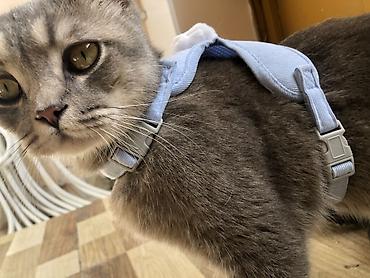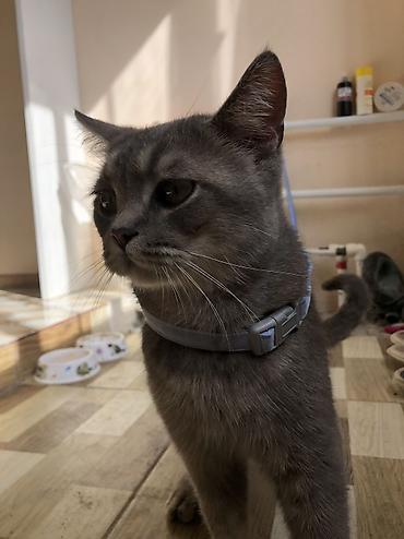 Boz rəngli ev pişiyi – zərif, qısa tüklü, sarımtıl gözlü. 4 aylıqdir. Yeknəsəq boz kürkü, incə quruluşu və uzun quyruğu ilə seçilir. Boyunluq taxmağa öyrəşib. Ev şəraitinə uyğun: qum qabına gedir, ...