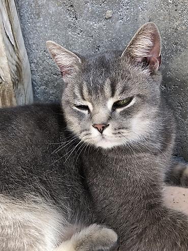 Boz tüklü ev pişiyi - Rəng: bərabər tonlu, tünd-boz (solid grey) - Qulaqlar orta ölçülü, başı yumru xətli, gözləri iri və ifadəli - Tüklər qısa və sıx, parlaq teksturalı - Bədən quruluşu yığcam və...