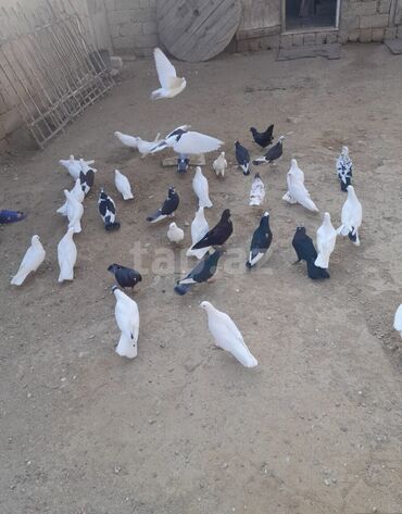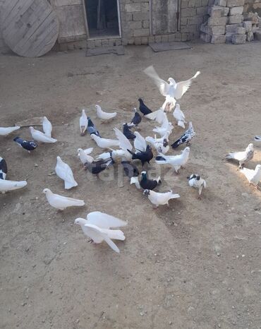 Məhsul: Ev quşları üçün müxtəlif cins və rəngdə göyərçin sürüsü kom200 azn,tək-tək razılaşma yolu ilə. Təsvir: - Şəkillərdə böyük bir göyərçin sürüsü görünür: ağ, qara-ağ, boz, qəhvəyi və ləkəli r...