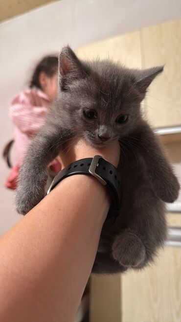 Britan tipli boz pişik balası - Rəng: tünd boz, sinəsində kiçik ağ ləkə - Xəz: qısa, yumşaq - Gözlər: yaşıl-qonur tonlarda - Xarakter: sakit, mehriban, qucaqlanmağı sevir; sakit ev mühitinə tez uy...