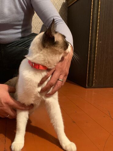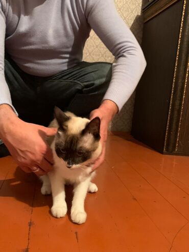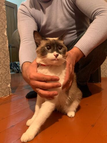 Digər cinsEv pişiyi – qısa tüklü, iki rəngli (ağ və qəhvəyi), maskalı üz naxışı ilə. Böyük, ifadəli gözlər, qısa burun, üçrəngə yaxın xallı sifət. Bədəni kompakt, pəncələri güclü və ağ “corablı” görünüşdədir. Boynunda parlaq qırmızı yaxalıq var (tənzimlənən tokalı). Sakit və mehriban təəssürat bağışlayır, qucaqlanmağa imkan verir. Mənzildə saxlanılmağa uyğundur, diqqət və oyunları sevir. Nəqli üçün asan uyğunlaşır. Ailə mühitinə tez alışan, evdə xoş atmosfer yaradan pişik axtaranlar üçün ideal.seçimdir real alıcılar narahat eləsin qiymətde razlaşmag olar