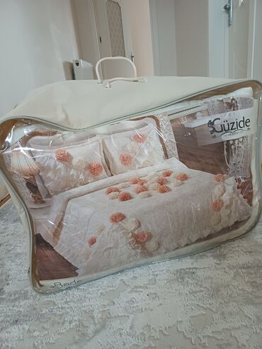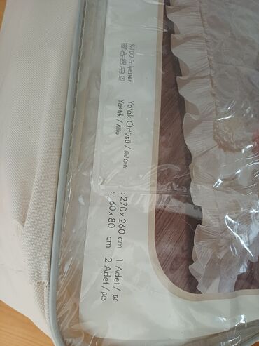 Brend: Ecem (Türkiyə, Bursa) Məhsul: Dekorativ yataq örtüyü dəsti - Komplekt: 1 ədəd yataq örtüyü + 2 ədəd yastıq üzü - Ölçülər (paket üzərində): Yataq örtüsü 265 x 270 sm, yastıq üzü 65 x 80 sm -...