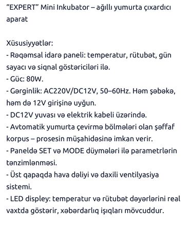 “EXPERT” Mini Inkubator – ağıllı yumurta çıxardıcı aparat
