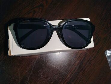 Qadın eynəkləri – dəst - 1 ədəd şəffaf şüşəli “cat-eye” optik çərçivə, qara rəng, zərif uclu forma, nazik saplaqlar, metal aktsent. - 4 ədəd gün eynəyi: - Qara “cat-eye” tünd linzalı model. - ...