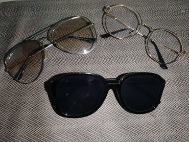 Məhsul: 3 ədəd eynək dəsti - 2 ədəd optik eynək: dar düzbucaqlı linzalı model. Biri gümüşü metal çərçivəli, digəri qara metal çərçivəli. Burun yastıqları tənzimlənəndir, saplar nazik və yüngüldür....