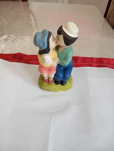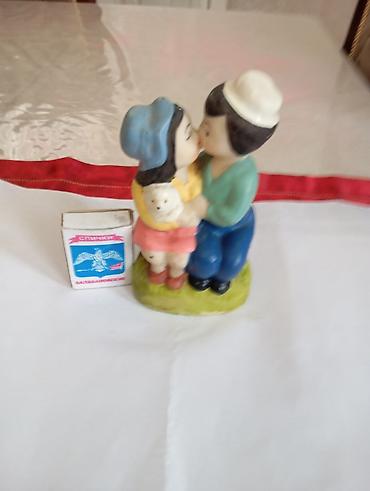 - Rəngarəng dekorativ keramika/porşlen fiqur. Kompozisiya skamyada oturan, bir-birini qucaqlayan və öpən gənc cütlüyü təsvir edir.