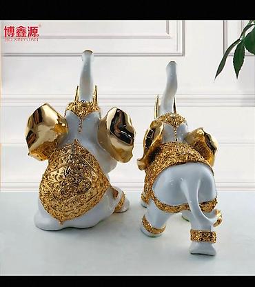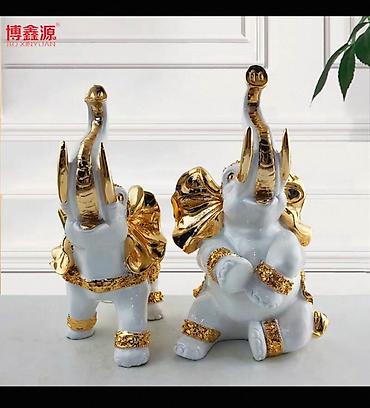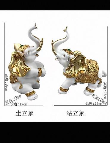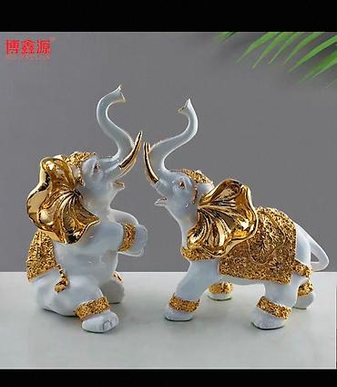 Qutudan iki ədəd uyğunlaşdırılmış fil heykəlciyi çıxır. Set interyerə zərif parıltı və simvolik bolluq ab-havası qatır.