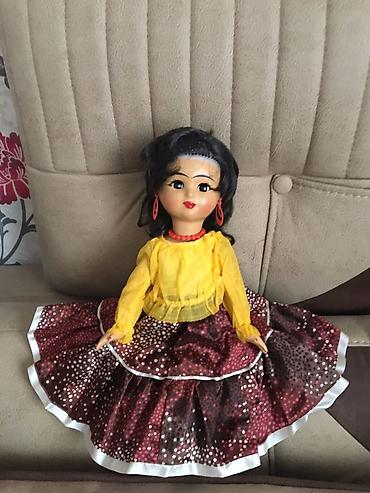 Milli geyimli dekorativ kukla - Azərbaycan milli geyimli əl işi dekorativ kukla - Başlıq: qızılı muncuqlu tac, muncuqdan asqılar və tül duvaq - Üst geyim: naxışlı, zərli haşiyələr və bəzək lentlə...