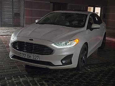 Ford Fusion sedan, ağ rəng, AZ nömrə nişanı “77 OH 327”. Zərif