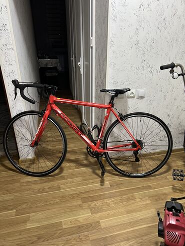 Yol velosipedi – ISMA, qırmızı rəng - Korpus: yüngül yol çərçivəsi, nazik borulu dizayn - Sükan: “drop bar” yol sükanı, STI tipli əyləc/ötürmə qolları - Ötürmələr: kasetli arxa dişli blok, ön və a...