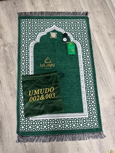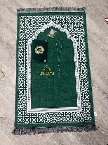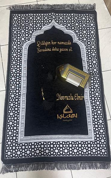 - Zərif naxışlı namaz xalçası (kənarları püsküllü). Xalçanın üzərində qızılı iplə duasal yazılar və ad/soyad fərdiləşdirilməsi mümkündür.
