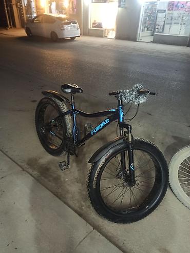 Şəhər içi gediş, qumlu/çəkməli yollar və qış sürüşləri üçün ideal ağır yolları asanlaşdıran fatbike. Gövdədə “Fullbike” loqotipi.