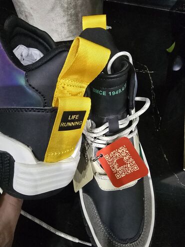 - Rəng kombinasiyası: qara/boz, krem panellər, yaşıl vurğular; arxada sarı dartma lentləri (Life Running yazısı)