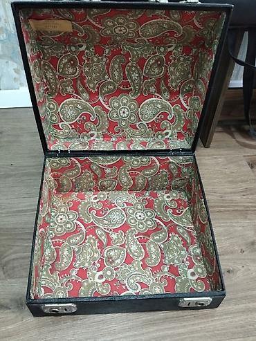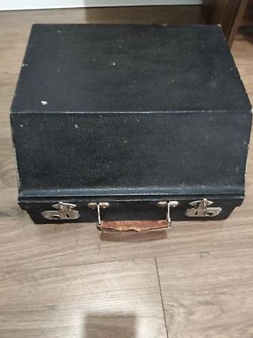 Retro ağac futlyarlı tikiş maşını üçün qutu/örtük. - Material: cilalanmış təbii ağac, taxta tutacaq və metal bərkidicilər - Formalı: yarımdairəvi (kappot tipli) yuxarı hissə, düz alt baza - Açarı ...