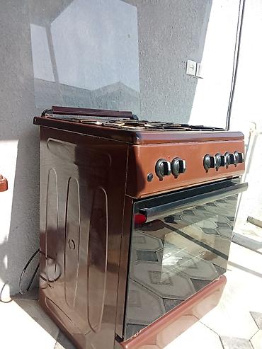 Qaz plitəsi və soba Xirdalanda - 4 gözlü qaz plitəsi: müxtəlif ölçülü brülörlər, çıxarılan dəmir barmaqlıqlar - Ön paneldə ayrı-ayrı mexaniki idarəetmə çarxları (4 plitə üçün + 1 soba üçün) - Aşağ...
