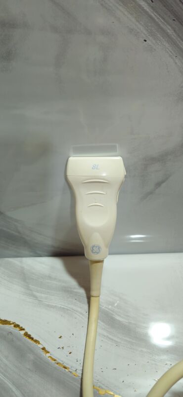 - Problar: şəkillərdəki GE 8L xətti prob (yüksək tezlikli, damar, muskul‑skelet, səthi orqan və damar doppleri üçün uyğundur)