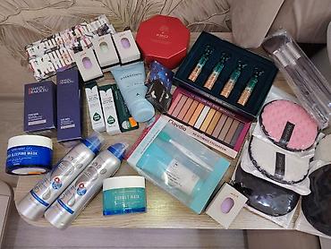 - Makiyaj üçün göz kölgəsi palitraları və dodaq məhsulları.