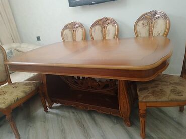 Başqa rəngKlassik üslubda genişlənən yemək masası və 6 ədəd stul dəsti.
