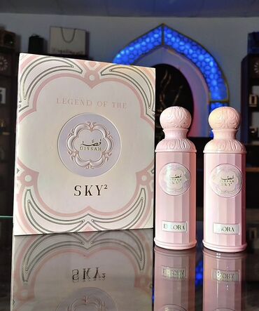 - Dizayn: Şərq naxışlı, qalın relyefli metal effektli şüşələr; eyni üslubda hədiyyə qutuları. Flakonlar hündür, dekorativ qapaqlı, üzərində Gissah loqosu və SKY² nişanı.