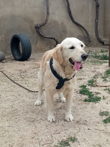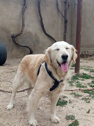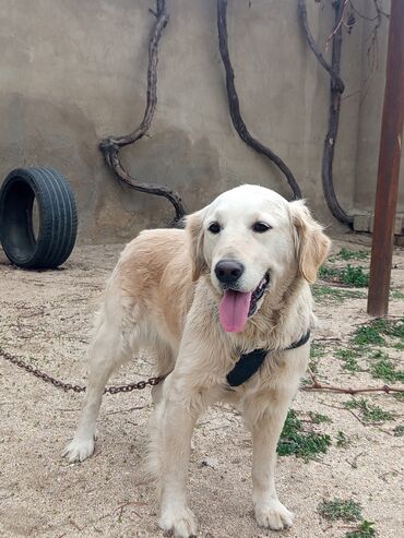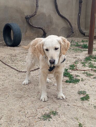 Golden Retriever balası satılır. - Cins: Golden Retriever - Rəng: Açıq krem - Yaş: balaca (şəkildə görünən) - Xüsusiyyətlər: mehriban və ağıllı cins, ailələr və uşaqlar üçün uyğundur, öyrədilməsi ...