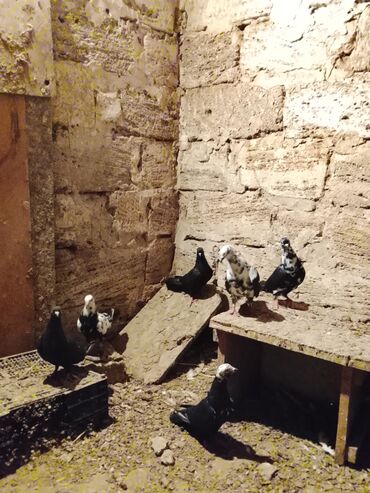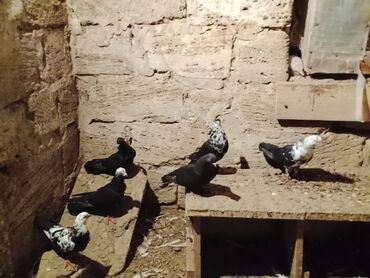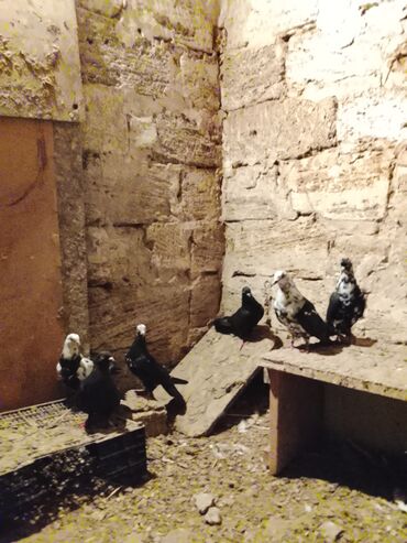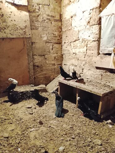 - Şəkillərdə müxtəlif rəng kombinasiyalı göyərçinlər göstərilir: tam qara, qara‑ağ alaca, baş və boyun hissəsi ağ ləkəli variantlar.