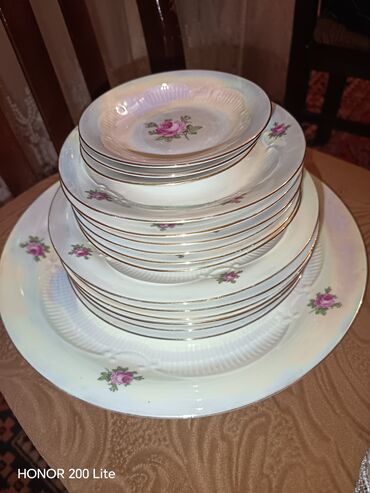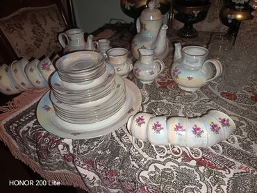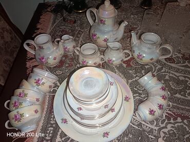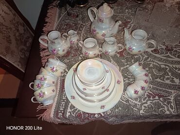 Zərif porselen çay-servis dəsti.cehiz kimi alınıb istifadə olunmayib. - Material: keyfiyyətli - Dizayn: incə gümüşü ornamentlər və qızılı detallarla bəzədilmiş, zərgərlik naxışlı haşiyələr