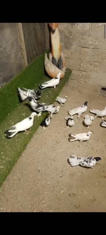 Məhsul: Ev göyərçinləri kolleksiyası Təsvir:kom satılır - Rəng müxtəlifliyi: ağ, qara, qəhvəyi, boz, ağ‑qara, qəhvəyi‑ağ ləkəli və digər kombinasiyalar. - Say: şəkillərdə çoxsaylı fərqli cütlər və...