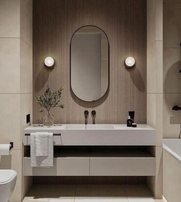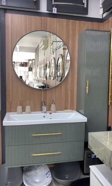 Hamam üçün asma mebel dəstləri Müasir dizaynlı, divara montaj olunan lavabo mebelləri və LED işıqlı güzgülərdən ibarət dəstlər. Fərqli ölçü və rəng kombinasiyaları mövcuddur. Model 1: - Zeytun-ya...