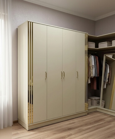 Zəmanətli- Dörd qapılı geyim şkafı, krem rəngdə modern dizayn