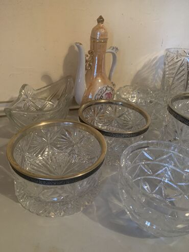 Xrustal qablar, konfet üçün cütü 25 manatmeyvə üçün cütü 35 manat
