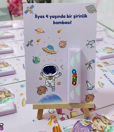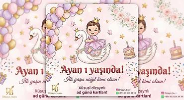 - Dizayn nümunələri: “İlyas 4 yaşında bir şirinlik bombası!”, “Ayan 1 yaşında! İlk yaşın nağıl kimi olsun!”, kosmos temalı dovşan-astronavt illüstrasiyaları, unicorn mövzusu və s.