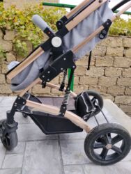 Belecoo uşaq arabası – qızılı şassili, qəhvəyi/bej rəng kombinasiyası. -Əlavə olaraq üzərində uşaq arabasının öz çantası və xadenok verilir Xüsusiyyətlər: - İki istiqamətli oturacaq: körpə valide...
