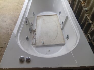 - Ağ akril hidromasajlı vanna: korpusda inteqrə edilmiş çoxsaylı masaj jetləri, hava/masaj funksiyası üçün idarəetmə düymələri ön paneldə. Yan divarlarda oturacaq çıxıntıları və başlıqlar üçün rahat buxarlanma zonasına malikdir. İçəridə drenaj və daşma sistemi üçün hazır dəliklər. Kənarları panellə örtülməyə uyğun düz perimetr. Ölçülər təxmini: standart ikişəxslik tipli (şəkilə uyğun genişlik və uzunluq).