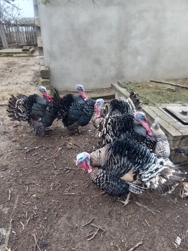 - Şəkillərdə iri cüssəli, rəngbərəng (qara, boz-ağ naxışlı) hinduşkalar görünür.