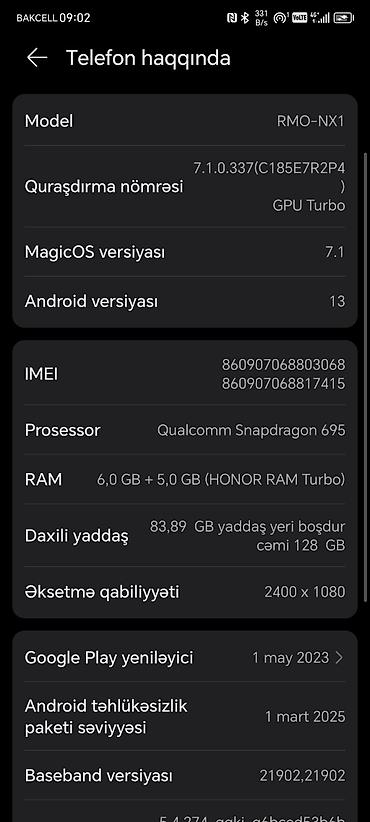 HONOR smartfon Super vezyetdedir heçbir prablemi yoxdur usdada olmayıb üsde kabro adaptırı verilir 8+8 turbo ramdı 256 yaddaş