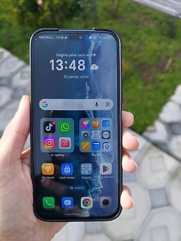 HONOR smartfon - Rəng: mavi (dalğavari teksturalı arxa panel) - Arxa kamera bloku: oval modul, üç kamera və LED flaş - Ön kamera: ekranın yuxarı mərkəzində punkt formalı - Ekran: tam ekran, dar çər...