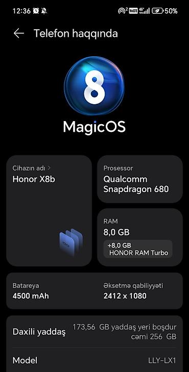 Telefon ideal veziyyetdedir tecili satılmalıdı cuzi endirim olacag real aliciyaHonor X8b – yaşıl rəng