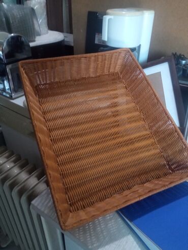 Bu, geniş imkanlar təklif edən düzbucaqlı formada, hörülmüş səbətdir. Onun tünd qəhvəyi rəngdə hörülmüş haşiyəsi və açıq qəhvəyi rəngdə hörülmüş daxili hissəsi var. Yüngül materialdan hazırlanıb və əşyaların rahat saxlanması üçün dayanıqlı quruluşa malikdir. Yığcam dizaynı onu rəflərdə və şkaflarda yerləşdirməyə imkan verir. Bu səbət müxtəlif əşyaları, o cümlədən mətbəx ləvazimatlarını, ofis materiallarını və ya ev tekstilini saxlamaq üçün uyğundur. Evdə və ya ofisdə səliqə yaratmaq üçün praktiki bir həll yoludur.