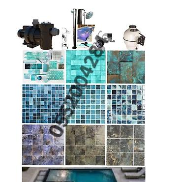 - Hovuz mozaikaları və plitələr: mavi‑türkuaz tonlarda kvadrat və düzbucaqlı elementlər, müxtəlif tekstura və naxış variantları. Hovuz içi, kənarları və spa zonaları üçün uyğundur.