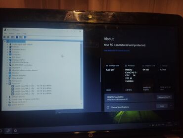 - Sistem: Windows ilə işləyir, Device Manager və About pəncərələri göstərilib
