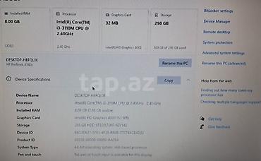 - Prosessor: Intel Core i3-3110M, 2.40 GHz, 2 nüvə/4 axın