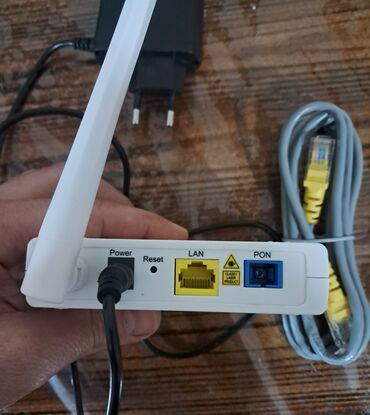 İşlekdi şunuru yoxdu ama HSGQ XPON ONU Wi‑Fi Router - Model: HSGQ-X111W (üzərində etiketdə) - Funksiyalar: 1GE + 1FE + 1 VoIP + WiFi - Dəstək: XPON/ONU - Wi‑Fi: 2.4 GHz, iki ədəd xarici antena il...