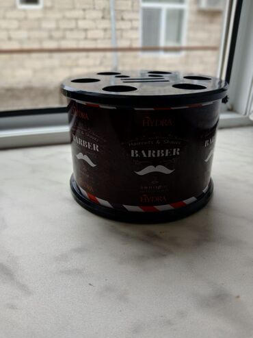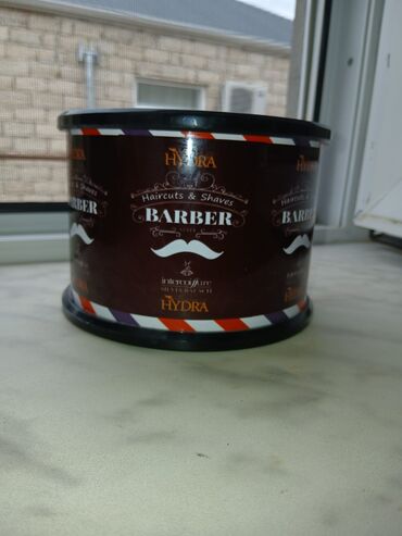 - Dizayn: “HYDRA – Haircuts & Shaves BARBER” tematik çap, klassik bərbər rəng zolaqları ilə.