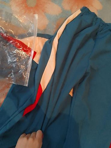 - Şalvar: elastik bel, yanlarda krem-ağ və qırmızı dekorativ zolaqlar