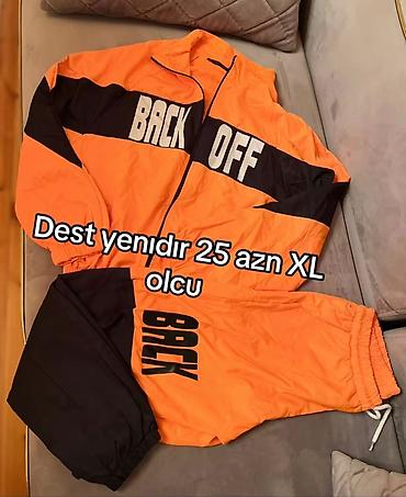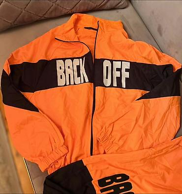 - Üst geyim: Fermuarlı, rezinli qol ucları; sinə hissəsində eninə qara zolaq üzərində iri “BACK OFF” yazısı