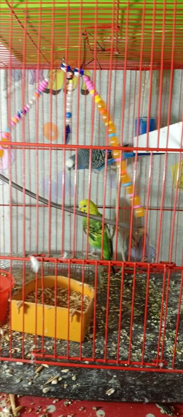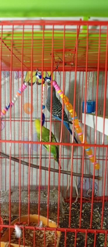 Hazir cütdü qefesi, yuvasi ,yem qabis, su qabi hamisi bir yerde satılır reglər: yaşıl‑qırmızı tonlarda və sarı‑qırmızı (üzü qırmızı) mutasiya. - Xasiyyət: insan əlinə gəlir, sakit və mehriban, sos...