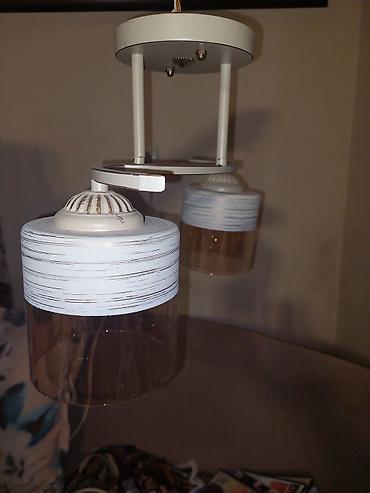 Məhsul: Lustra - Yer: Gəncə şəhəri - Qiymət: 20 m Təsvir: - 5 lampalı asma lustra - Material: mat şüşə plafonlar, paslanmayan polad rəngli metal korpus - Dizayn: qövs formalı qol hissələri, mərkə...