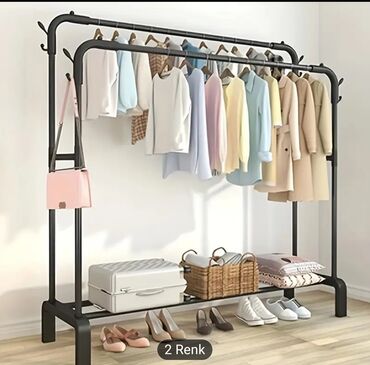 - Konstruksiya: iki paralel asqı borusu – köynək, gödəkçə, palto və uzun geyimlər üçün rahat