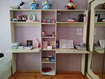 - İş sahələri: solda və sağda divara bərkidilən iki geniş masa paneli (kitab, dəftər və noutbuk üçün rahat)